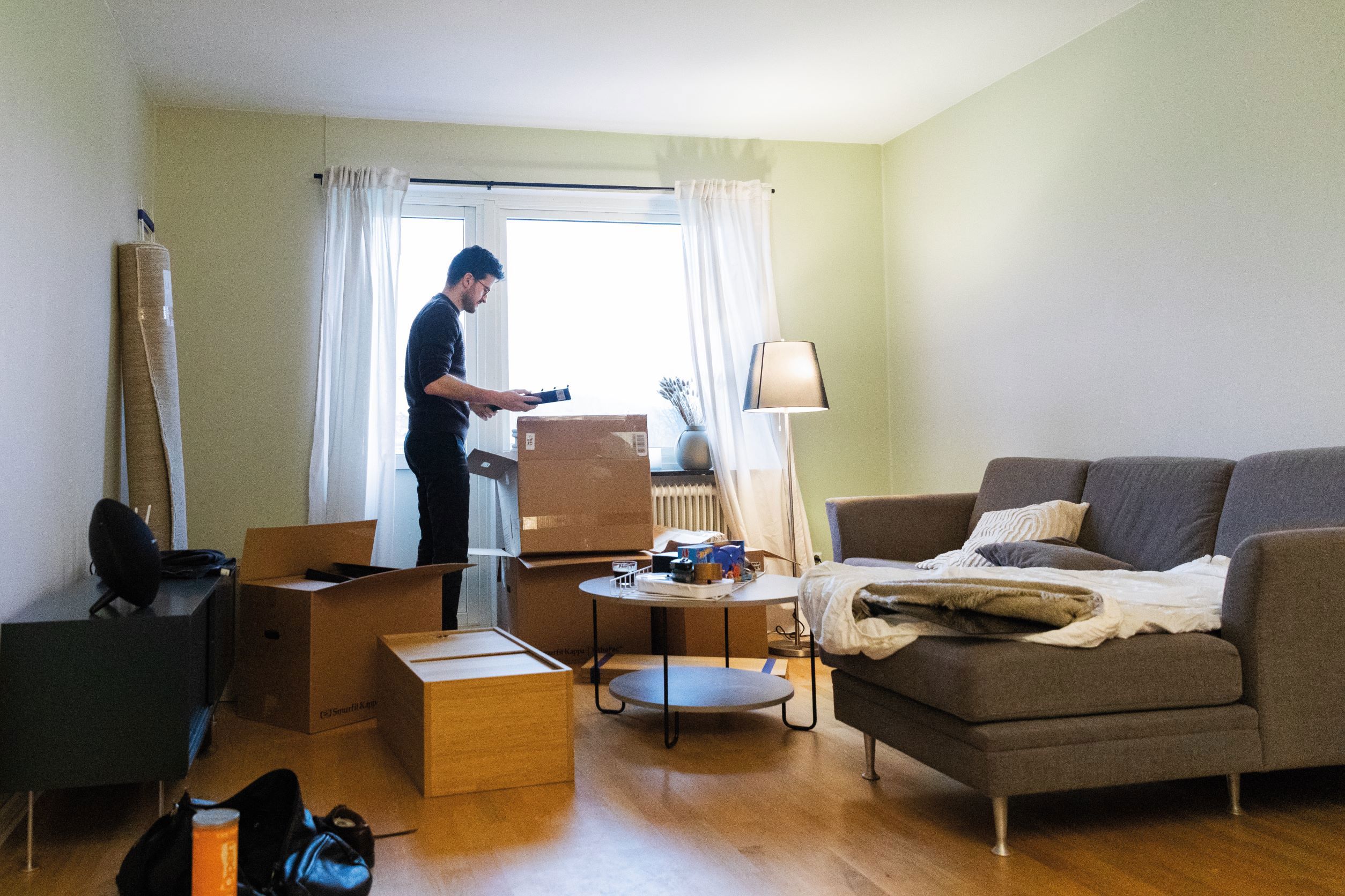 Benjamin Avdic står med händerna i sidorna och blickar ut över flyttlådorna i det nya vardagsrummet. Soffan har kommit på plats, men i den ligger teven inslagen i filtar och tar upp halva utrymmet. Först måste han hitta stativet. Vilken låda var det i egentligen…?