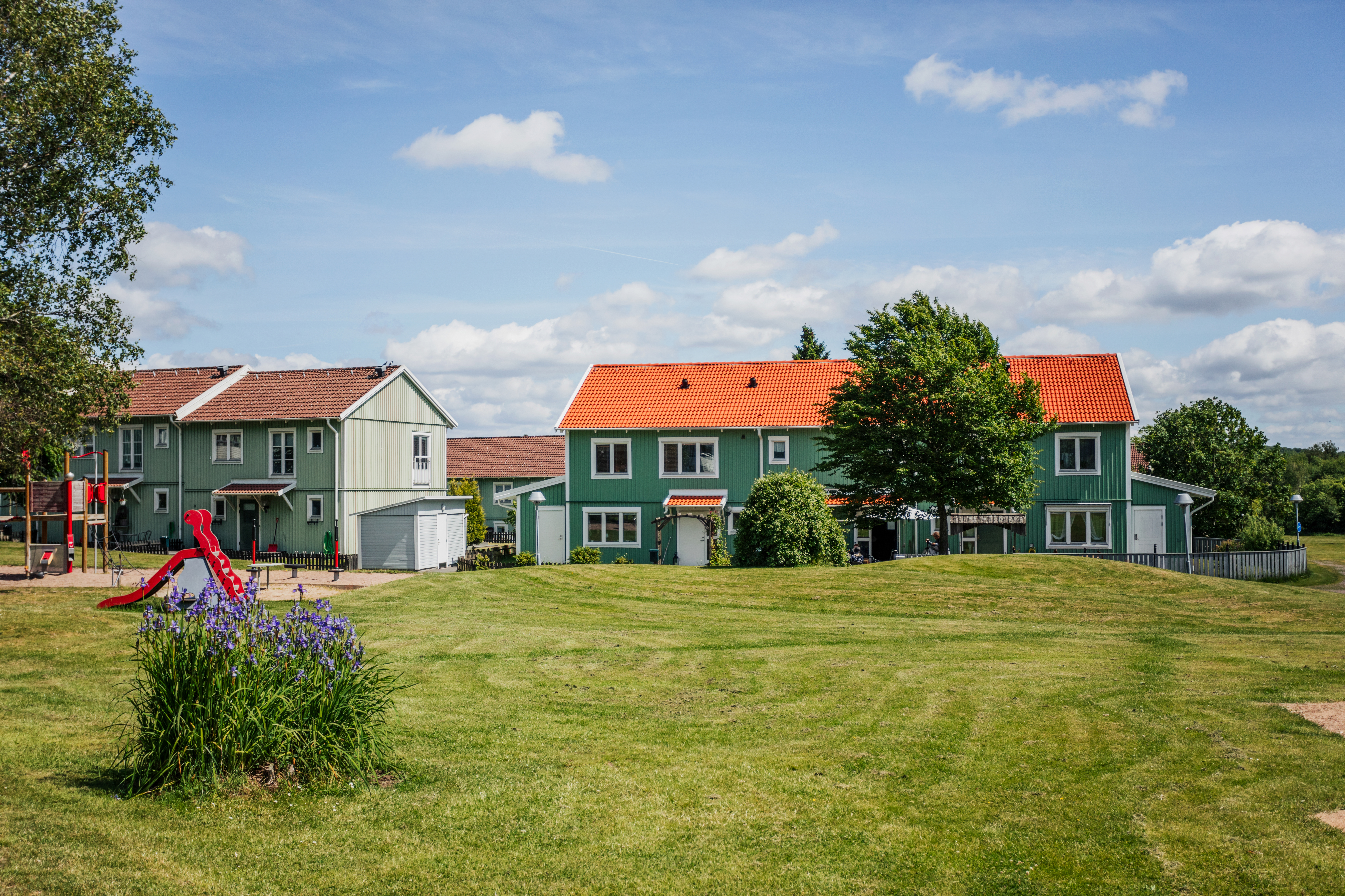 I den västra delen av Kållered ligger tvåvåningshusen med radhuskänsla. Lugnt, grönt och avskilt. Kålleredgården är byggt år 1989 och är idag i behov av ett rejält lyft. Här gör vi en utvändig renovering på samtliga hus och inför fjärrvärme.