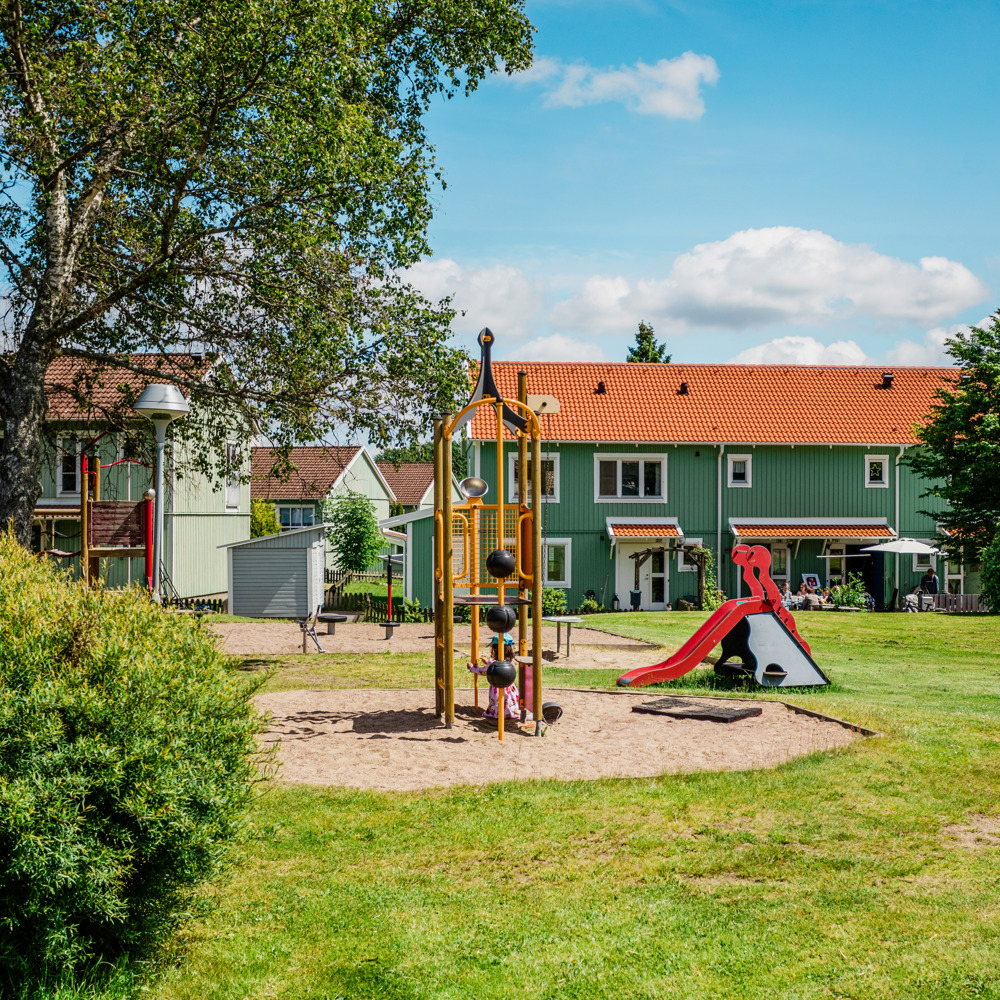 Tvåvåningshusen med radhuskänsla ligger lugnt och avskilt i västra delen av Kållered. Kvartersgården bidrar till trivsel och sammanhållning. Varmvatten samt uppvärmning av bostaden bekostas av hyresgästen själv via eget elabonnemang. Det är nära till Kållereds köpstad med bland annat Ikea och till allmänna kommunikationer.