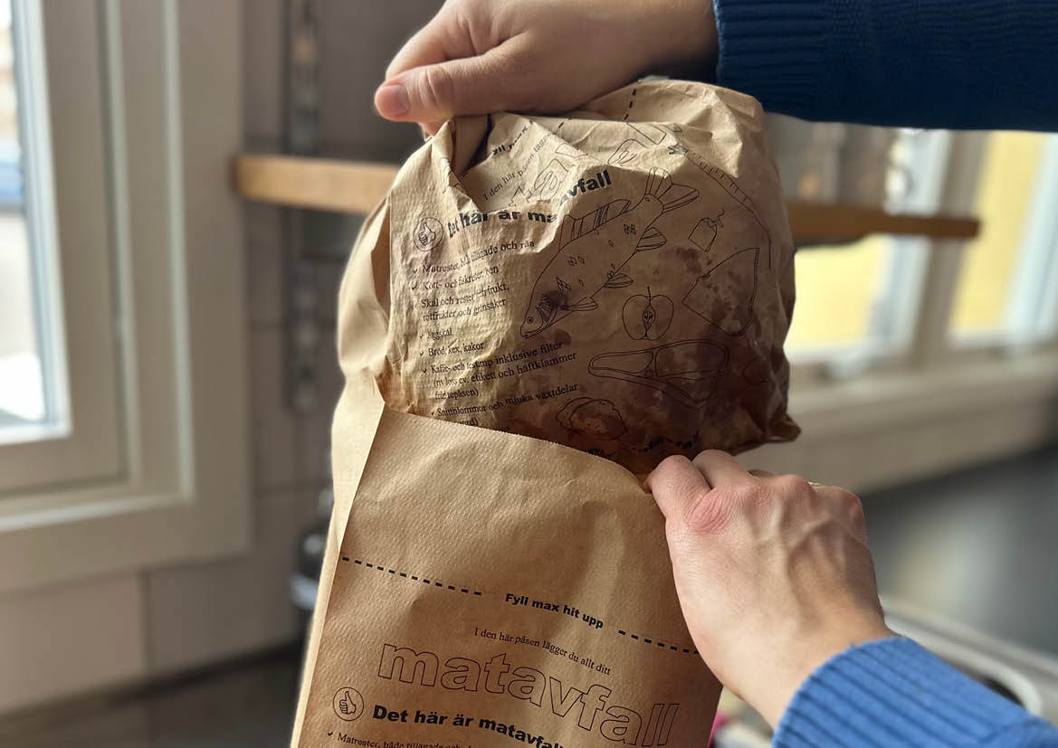 Sortera ditt matavfall i en matavfallspapperspåse. Den är gratis och finns att hämta i ditt miljörum. Matavfallet blir till biogas och biogödsel när du slänger det rätt. Alltså ny energi. Har påsen blivit blöt kan du lägga den i en extra matavfallspapperspåse när du bär ut den till miljörummet.