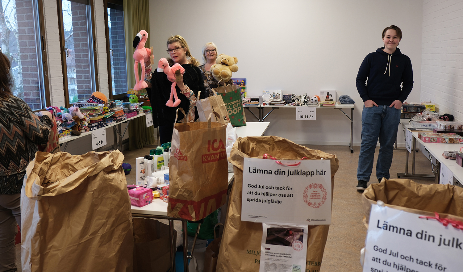 Flera familjer får nu ta del av nallar, spel, leksaker till fina stickade tröjor med mera som blir julklappar till barn och ungdomar i Mölndal med omnejd, där julklappar inte är en självklarhet.